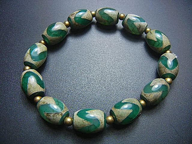 - ★西蔵天珠数珠★JFV3466 緑砂龍紋 虎牙天珠 数珠 10*14mm超勧め