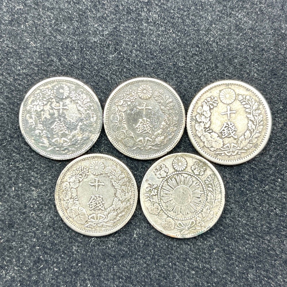 > A*) 明治 大正 旭日 竜 10銭/十銭 銀貨 5枚 まとめて 経年保管品 ヴィンテージ/古銭/コレクション ※ゆうパケット300円