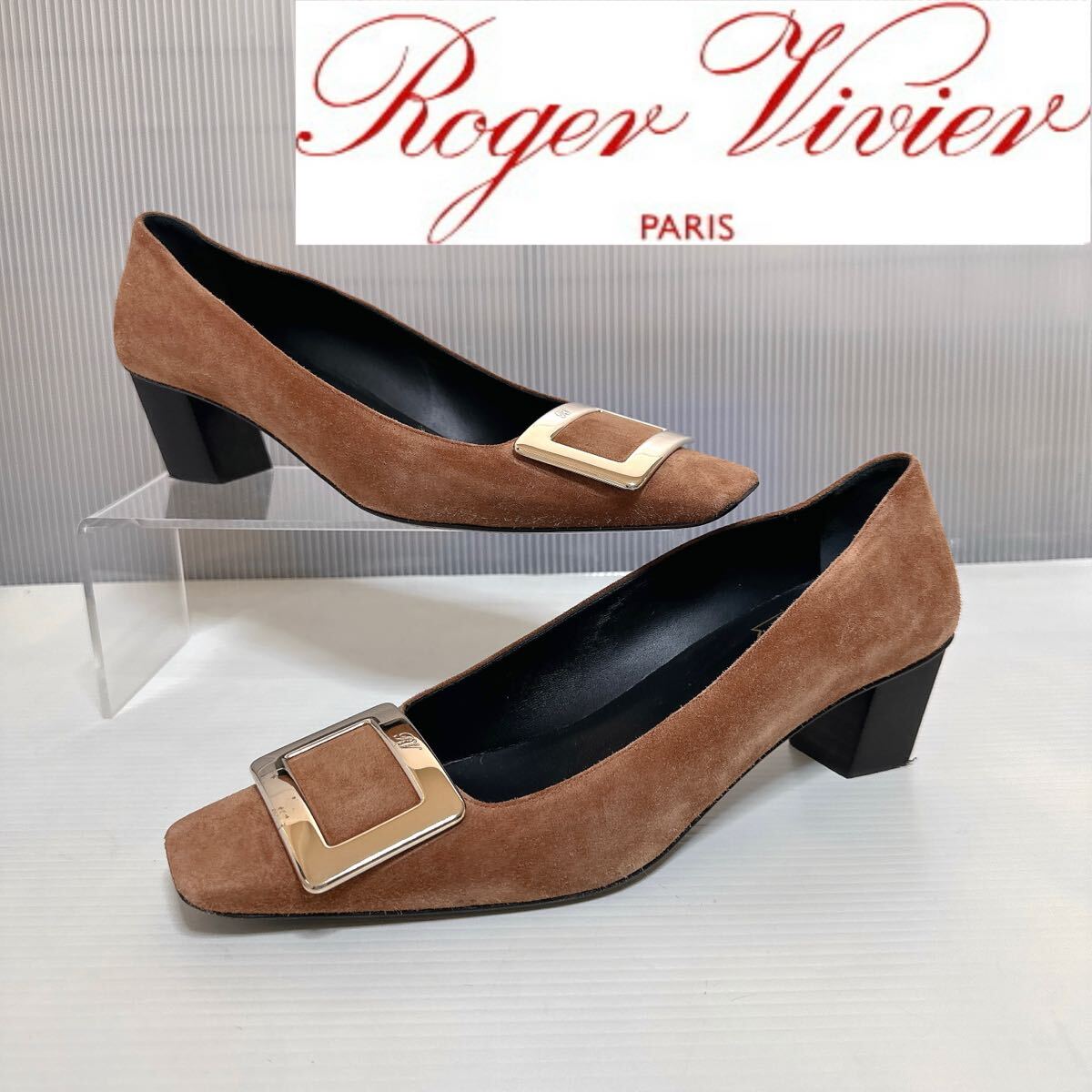- Roger Vivier ロジェヴィヴィエ メタルバックル パンプス フラットシューズ 試着のみ 38.5 靴 スエードレザー ローファー ブラウン