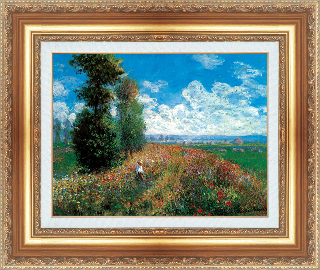- 複製絵画 額装品 世界の名画 クロード・モネ 「ポプラ草原の散歩道」 サイズ 10号