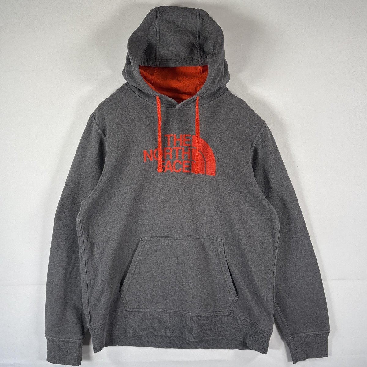 - 古着 ザ・ノースフェイス THE NORTH FACE パーカー スウェット ビッグロゴプリント プルオーバー フーディ L ダークグレー メンズ