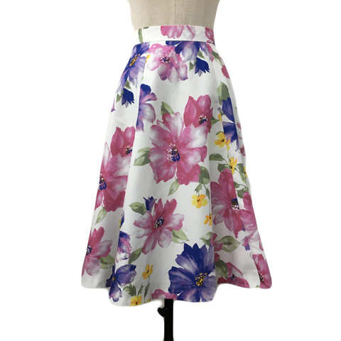 > リランドチュール Rirandture スカート フレア 膝下 ミモレ マルチカラー プリント 花柄 0 白 ピンク ホワイト レディース