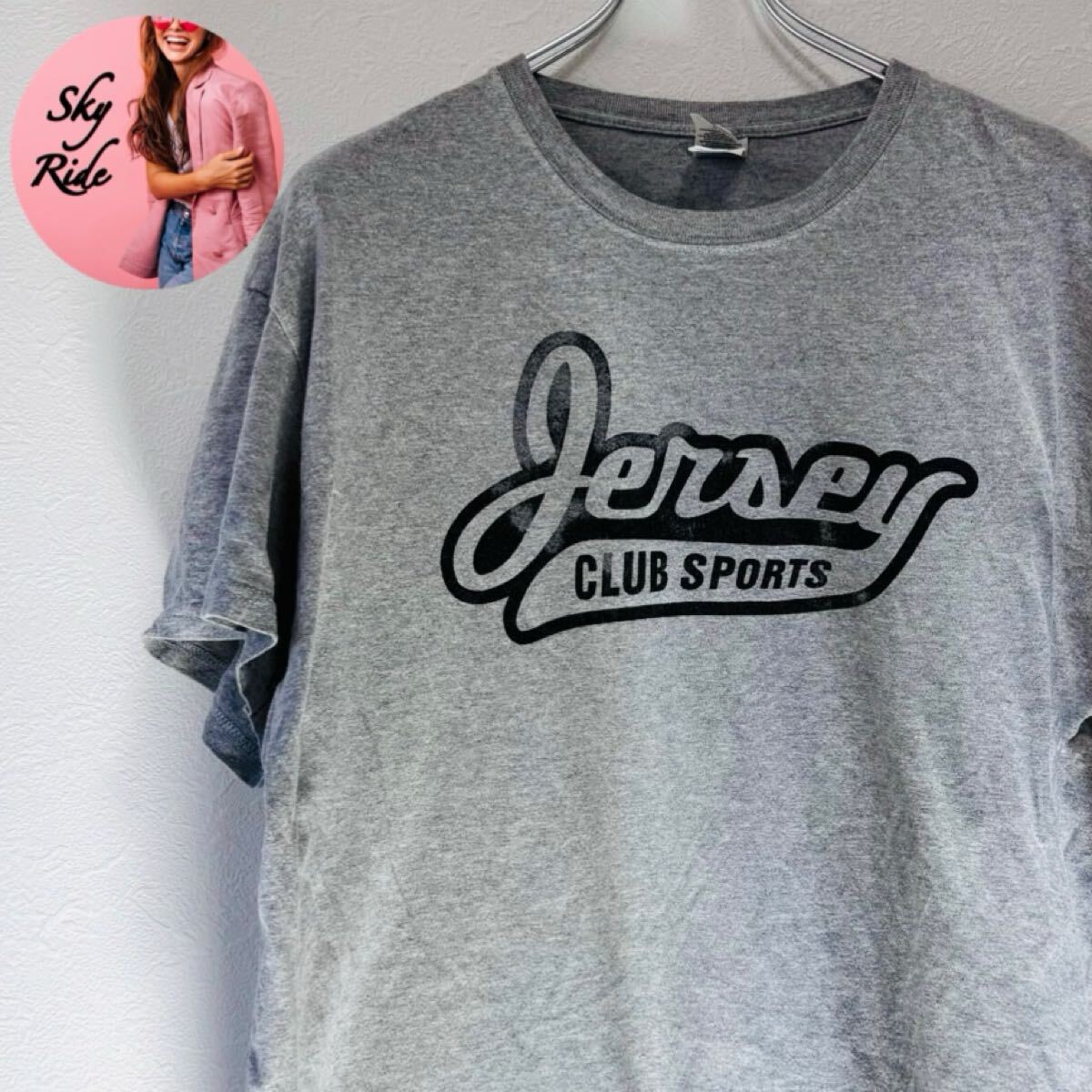 > GILDAN Jersey CLUB SPORTS ギルダン メンズ ビッグプリント ヴィンテージ 半袖Tシャツ グレー XL ビッグシルエット USA 古着 #SB0086