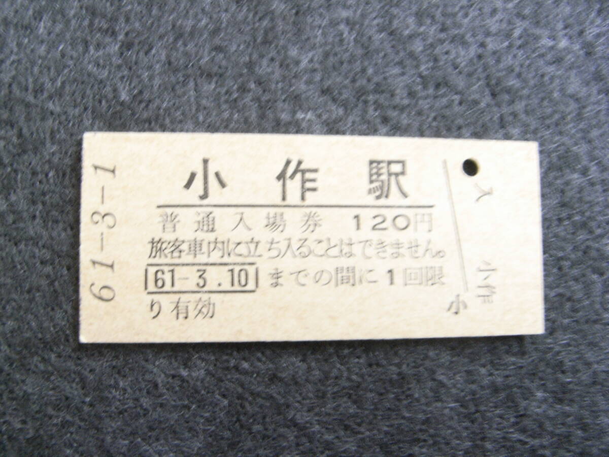 - 青梅線 小作駅 普通入場券 120円 昭和61年3月1日 国鉄 小作駅橋上駅舎開業記念