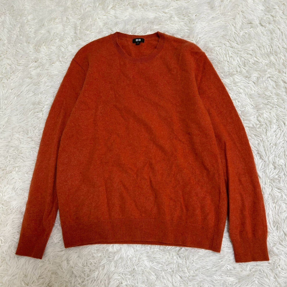 > UNIQLO ユニクロ ニット セーター クルーネック 長袖 カシミヤ100% オレンジ サイズXL