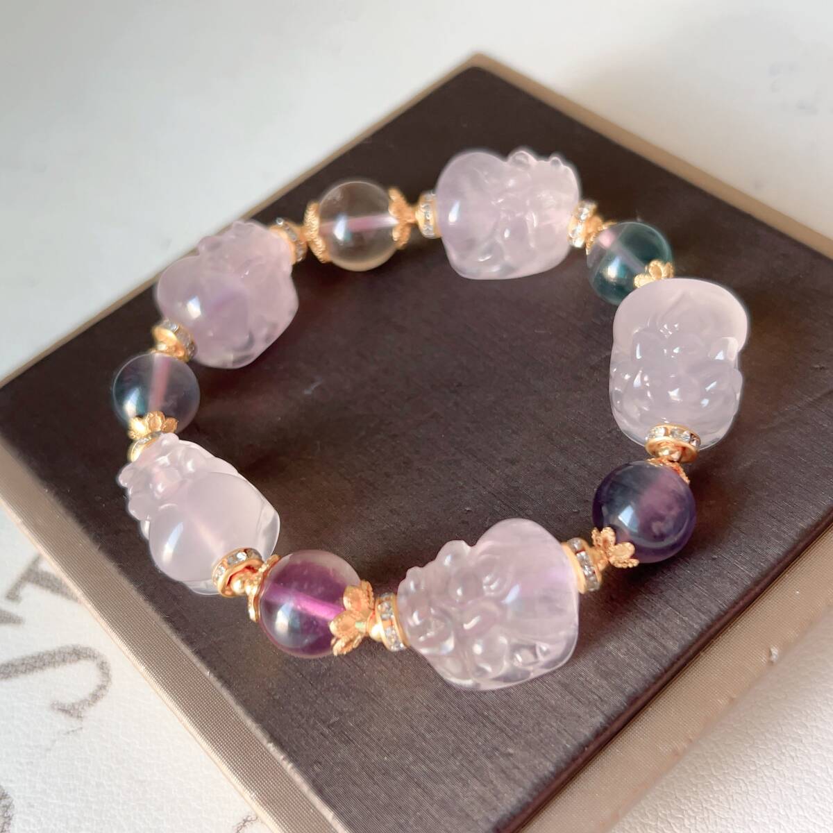 > ◇フローライト◇螢石◇貔貅(ヒキュウ)形 ◇ブレスレット◇パワーストーン◇天然石◇巾着袋付き◇プレゼントにも036B4211