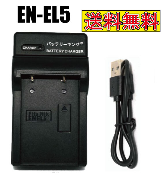 > 【送料無料】 Nikon ニコン EN-EL5 ENEL5 Coolpix P530 P520 P510 急速充電器 USB付き 急速充電器 AC充電対応 シガライター充電対応 互換品
