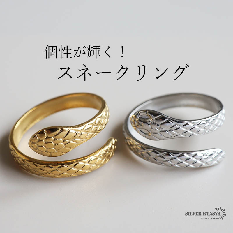 - (ゴールド) スネークリング 巻き付く 蛇リング キルティング 18KGP ステンレス 存在感 フリーサイズ アレルギー対応