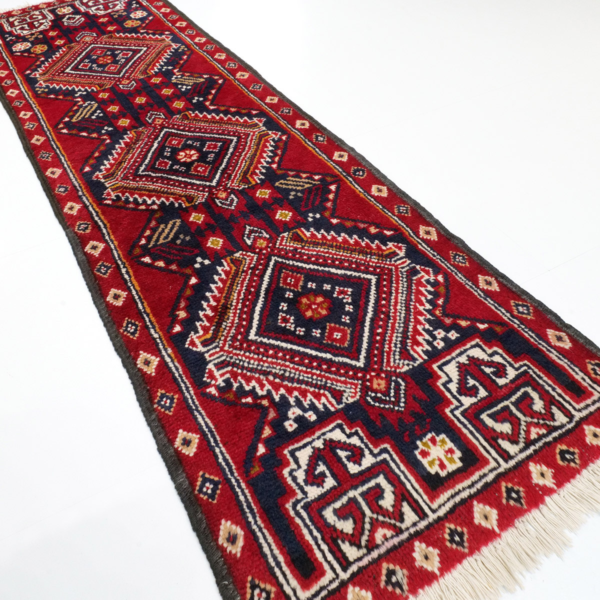 > バルーチ産 1800×520mm 1960年代 セミアンティーク絨毯 ダイヤモンドギュル トライバルラグ ランナーラグ 手織り絨毯 一点物【送料無料】