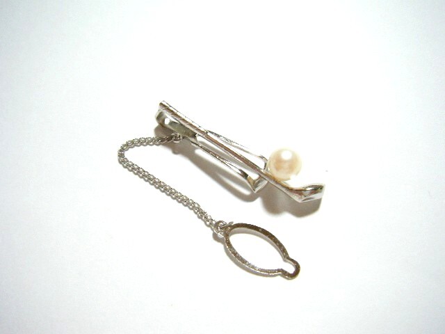 - ★SILVER パール 7.4mm ネクタイピン タイピン ゴルフクラブ型 【MD12】