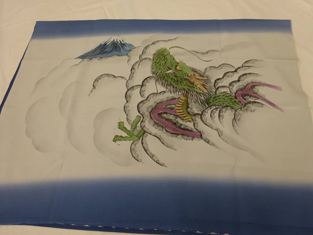 - 男物★新品・正絹★キングサイズ額裏(羽裏・コート裏)★ブルー地に雲龍柄です