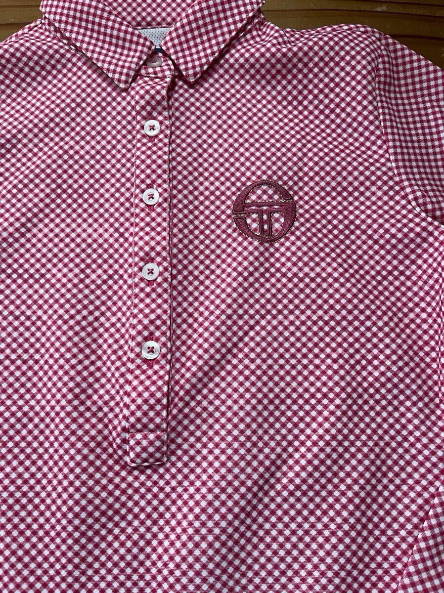 > 送料込み! SERGIO TACCHINI 美品 セルジオタッキーニ 長袖ポロシャツ ギンガムチェック Mサイズ ピンク GOLF ゴルフウェア テニス