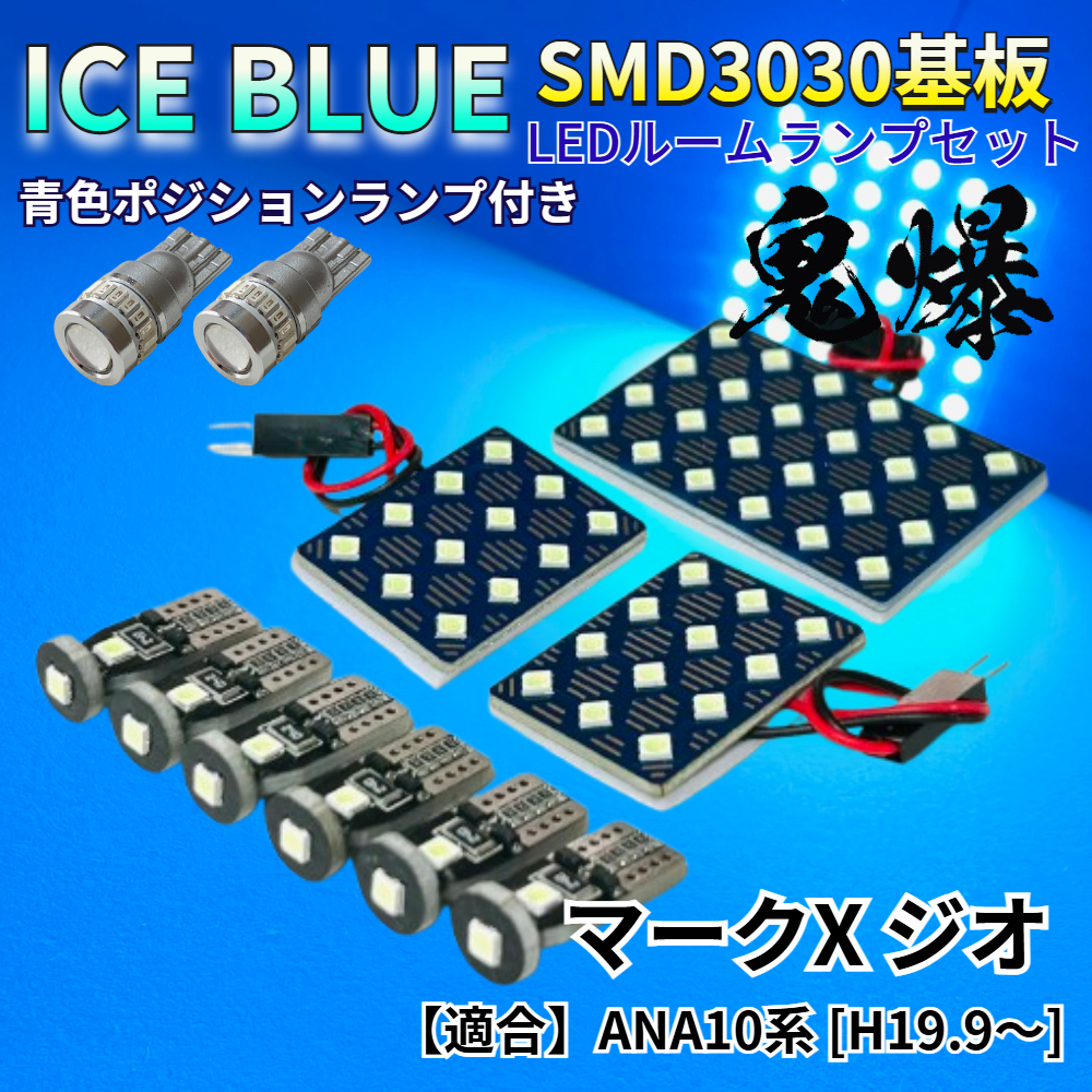 > 【アイスブルー】マークX ジオ ANA10系 鬼爆基板 3030SMD LED ルームランプ スモールランプ セット 車内灯 室内灯 パーツ アクセサリ