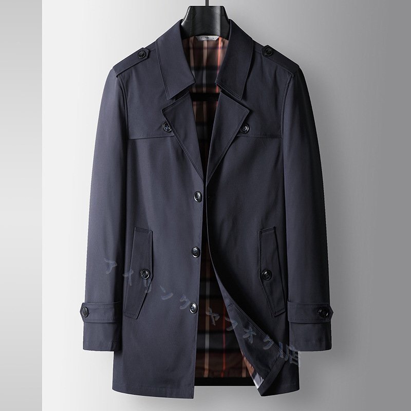 - スプリングコート メンズ ウインドブレーカー ステンカラーコート チェスターコート ビジネスネイビー サイズ選択可