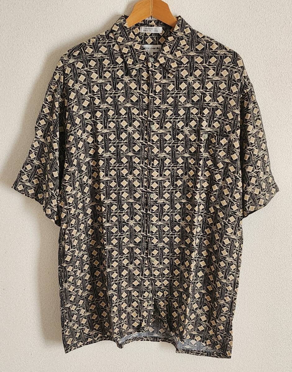 - 90sピエールカルダンレーヨンシャツ半袖柄オールドビンテージ古着