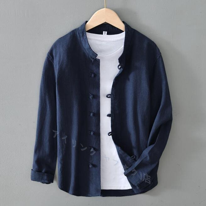 - シャツジャケット リネンジャケット カーディガン 立ち襟 春夏秋通気 メンズ ブレザー ブルゾン トップス 紺 M~3XL