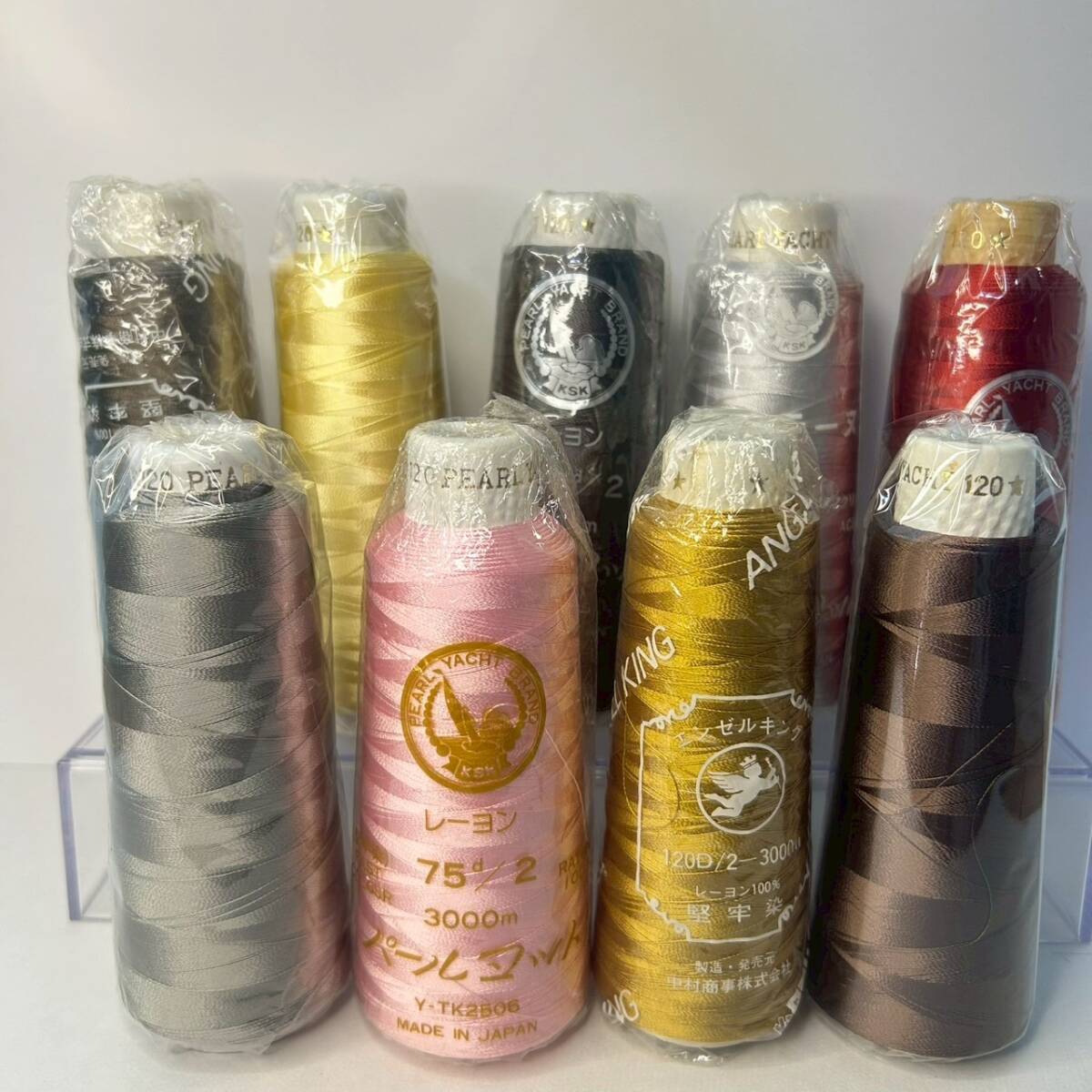 - 【500円にて出品!/ 1本56円以下】 刺繍機ミシン糸 9本/評価A~B品 パールヨット キング ミサイルツル ジャノメ タジマ EM 8