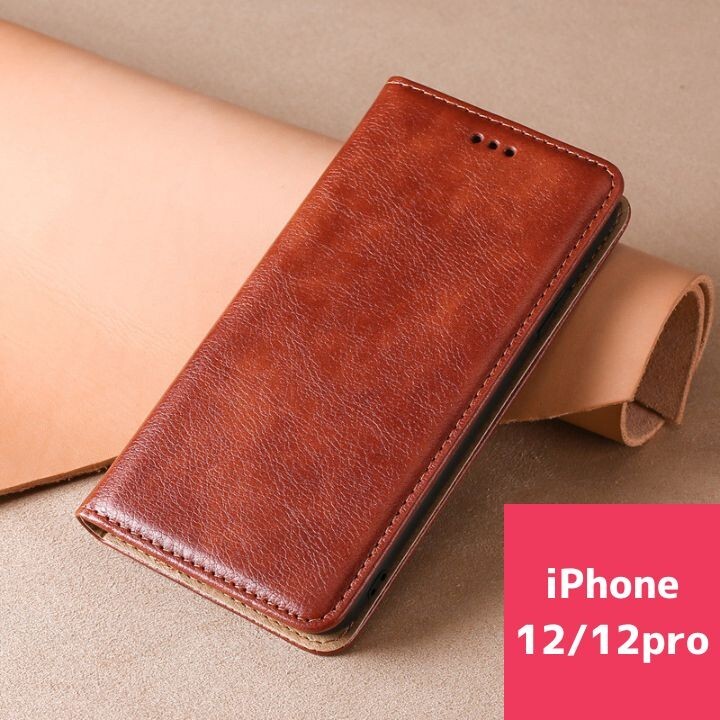 > iPhone12/12pro ケース 手帳型 レザーケース 韓国 ブラウン 人気
