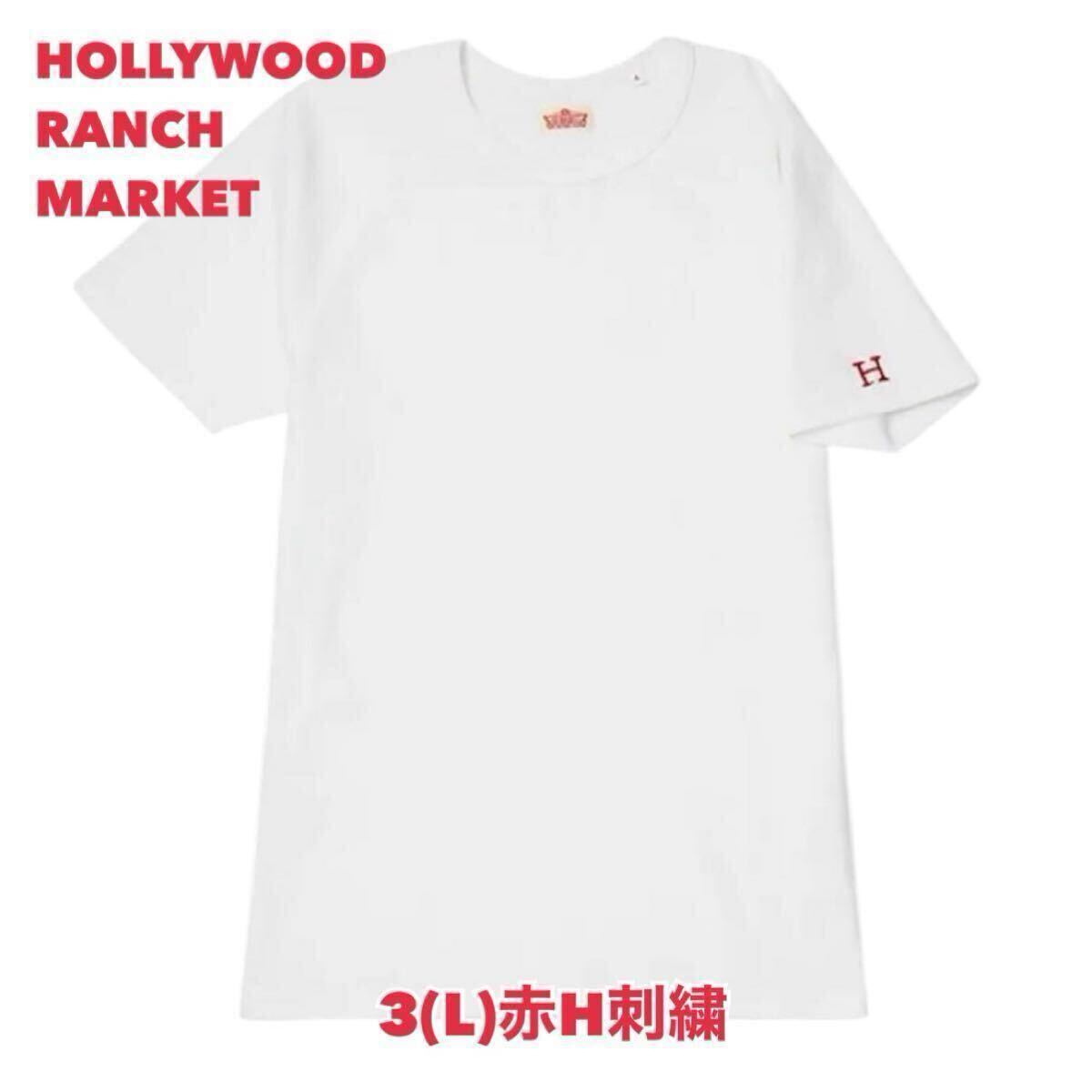 > 新品未使用★サイズ3(L)★ハリウッドランチマーケット★ストレッチフライス クルーネック半袖Tシャツ ホワイト (赤H刺しゅう) H-59