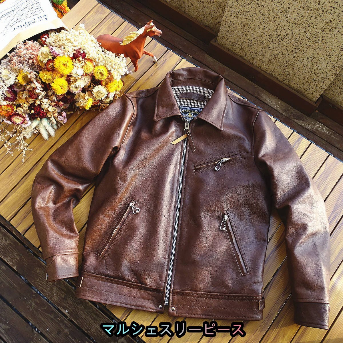 - メンズ馬革 レザージャケット 本革 ホースハイド 革ジャン バイクレザー アメカジ メンズ S~3XL
