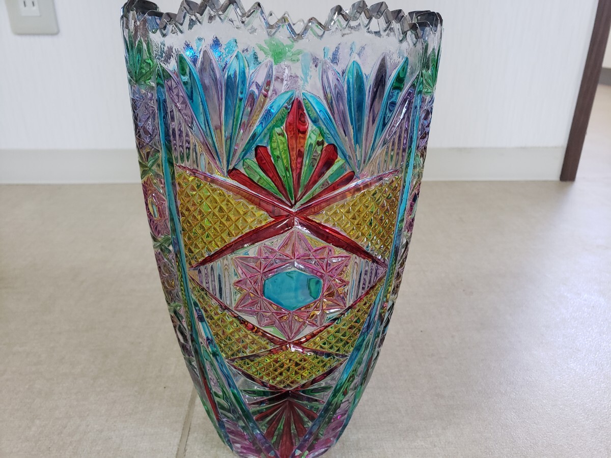- ボヘミアグラス花瓶#ガラス製#鮮やか