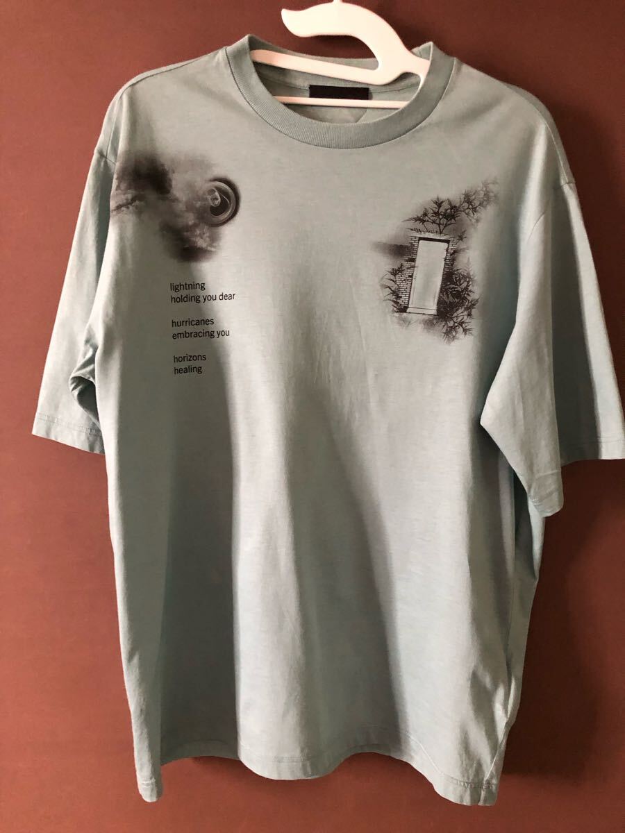 - PRADA 転写プリント Tシャツ 水色 ラフシモンズ 首三角パッチ