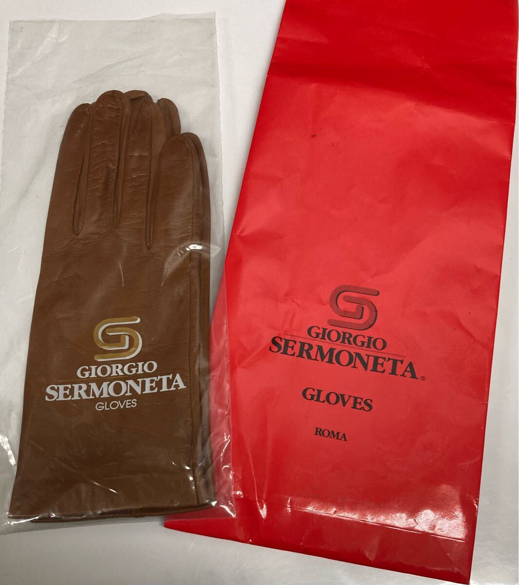 - 未使用 ♪ GIORGIO SERMONETA セルモネータ ♪ レザー グローブ 手袋 イタリア製 本革 ブラウン系 genuine leather