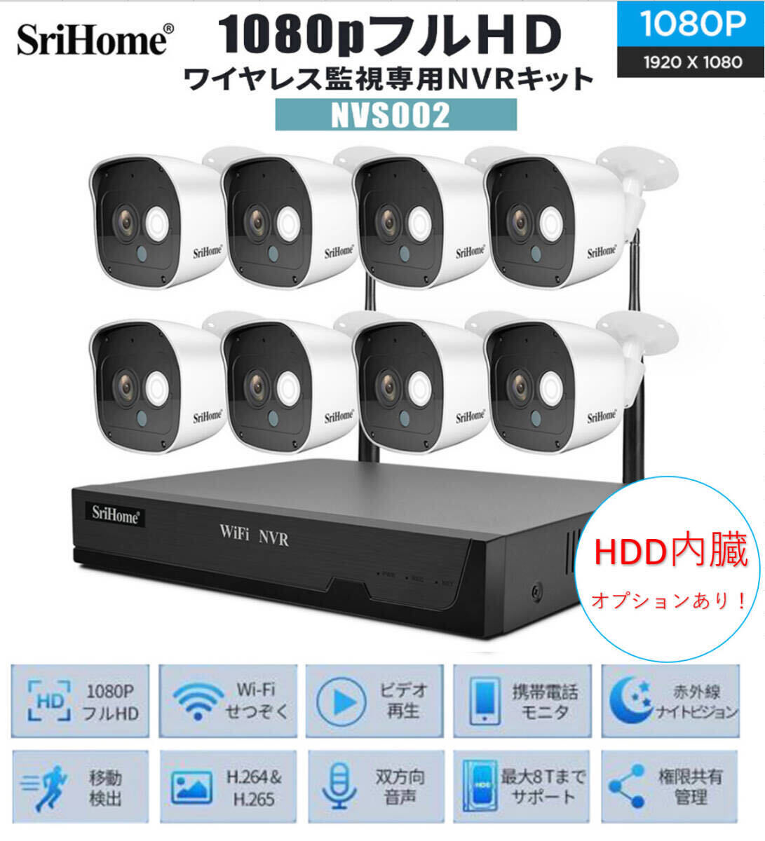 - 送料無料・迅速配送・防犯カメラセット8台カメラ 屋外 IP66防水 監視カメラ 遠隔監視&動体検知 暗視撮影 多彩な録画モード 正規品SriHome