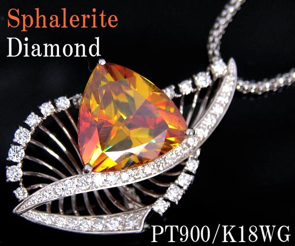 - ☆じゅえりぃばんく☆ 超大粒14ct ダイヤ以上のファイア ! PT/K18 スファレライト ダイヤモンド ネック&ブローチ【鑑別書付】