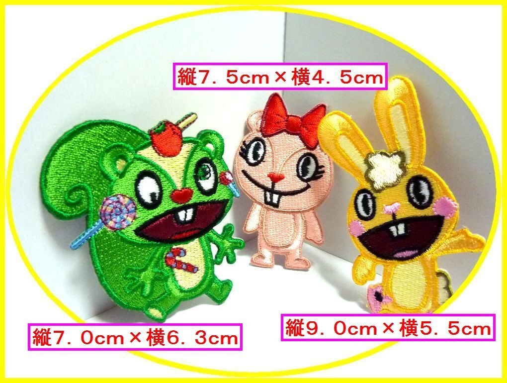 - 3枚セット特別価格!アイロン 接着 刺繍 ワッペン◆ハッピーツリーフレンズ ハピツリ◆ キャラクター アメトイ アメ雑 雑貨