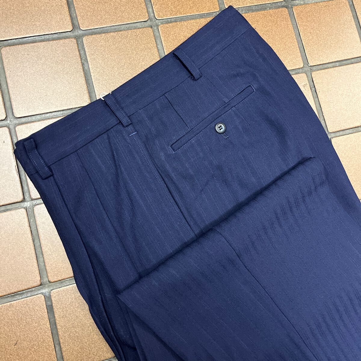 > 新品☆未使用 W86cm ネイビー ゆるダボ ゴルフパンツ カジュアルパンツ ゴルフウェア GOLF スラックス 2タック ウール100% ストライプ