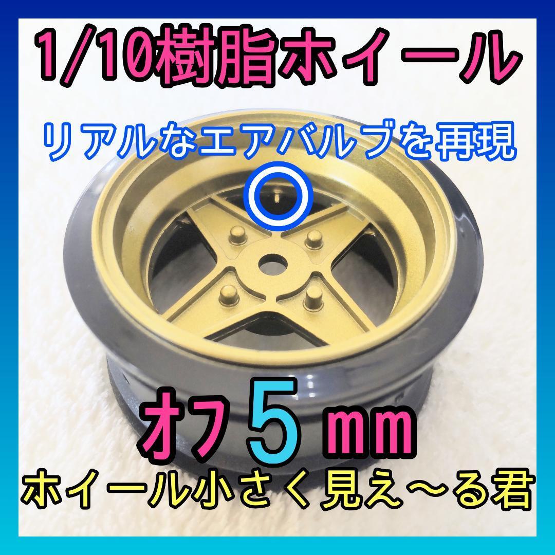 - 1/10オフセット5mm樹脂ホイール 小径 十字 ゴールド ラジコン ドリフト