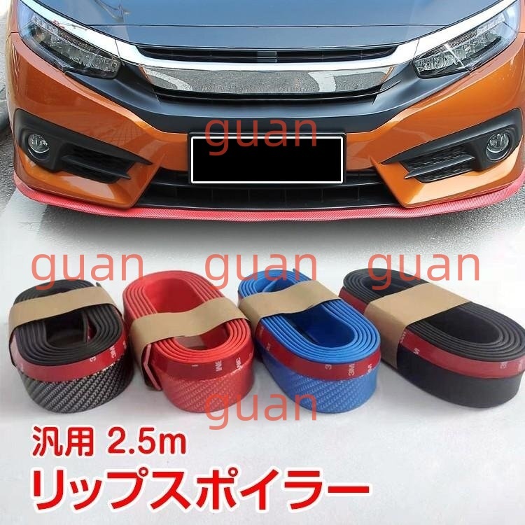 - 車 リップスポイラー 汎用 2.5m ゴム アンダーリップ サイドシル バンパー エアロパーツ モール カーボン調 ドレスアップ ガリ傷防止