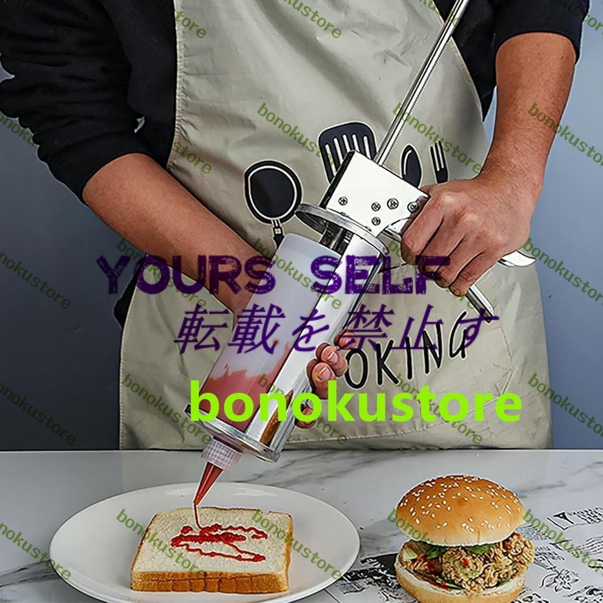 > バーガーソースガン スクイーズボトル付き定量ソースディスペンサー サラダソースガン 厚さ1.2mmのステンレス鋼トマトソースガン