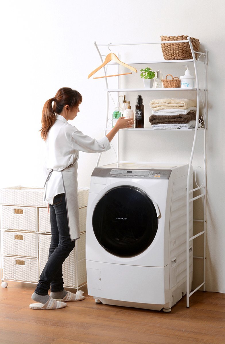 - スペースを有効活用できる洗濯機ラック 幅75 洗濯機ラック ホワイト色