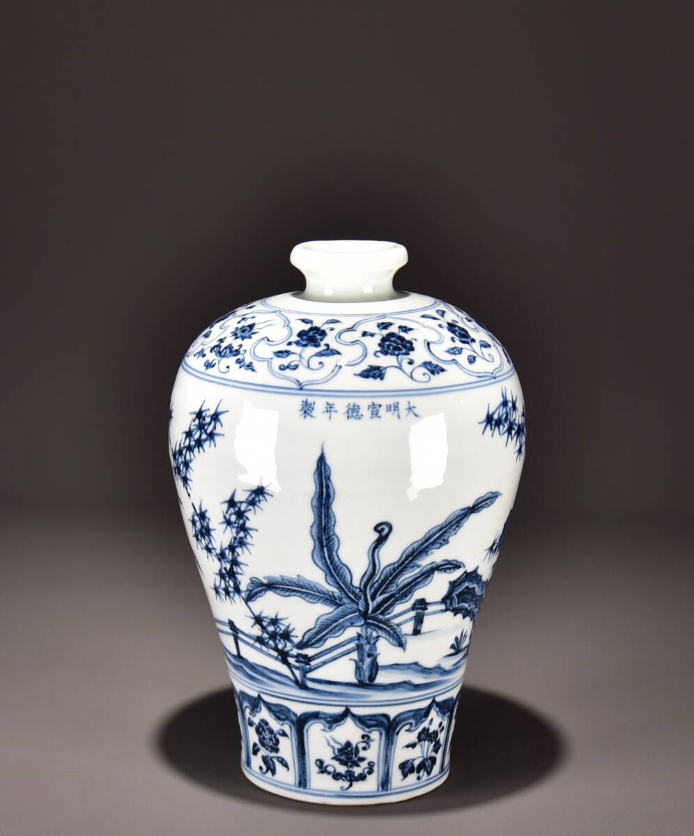 - 【蔵友館蔵品・明・宣德年製款・古陶瓷品・青花・竹蘭紋・梅瓶】・希少珍品・置物・賞物・中国時代美術