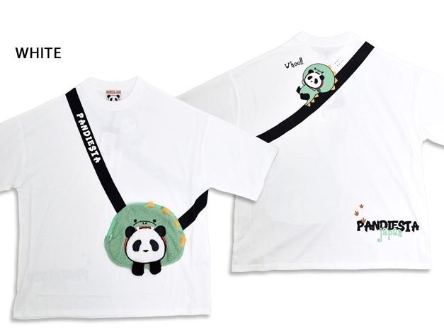 > ダイナソーパンダ バッグ付きBIG Tee◆PANDIESTA JAPAN ホワイトMサイズ 585754 パンディエスタジャパン 恐竜 ゆったりめ オーバーサイズ