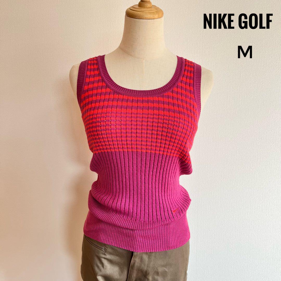 > NIKE golf ナイキ ゴルフ レディース 配色 リブニット ベスト ノースリーブ M ピンク 刺繍ロゴ