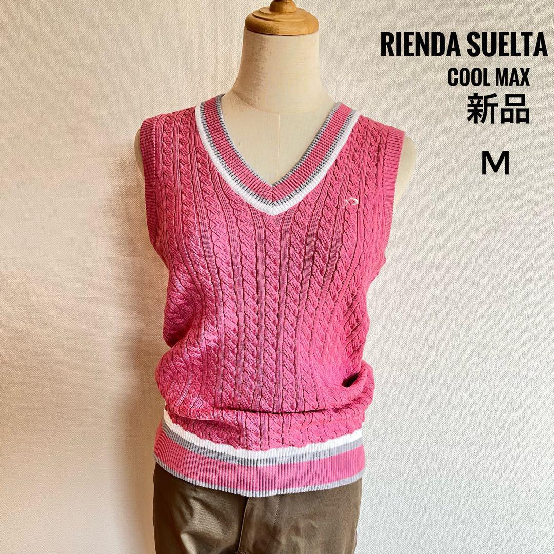 - 新品 Rienda Suelta cool max レディース 春夏用 ニットベスト M ピンク 刺繍ロゴ