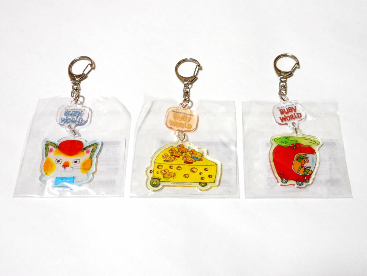 - リチャード・スキャリー ビジーワールド 2連アクリルキーホルダー 3種セット チーズカー リンゴカー ハックル Richard Scarry's Busy World