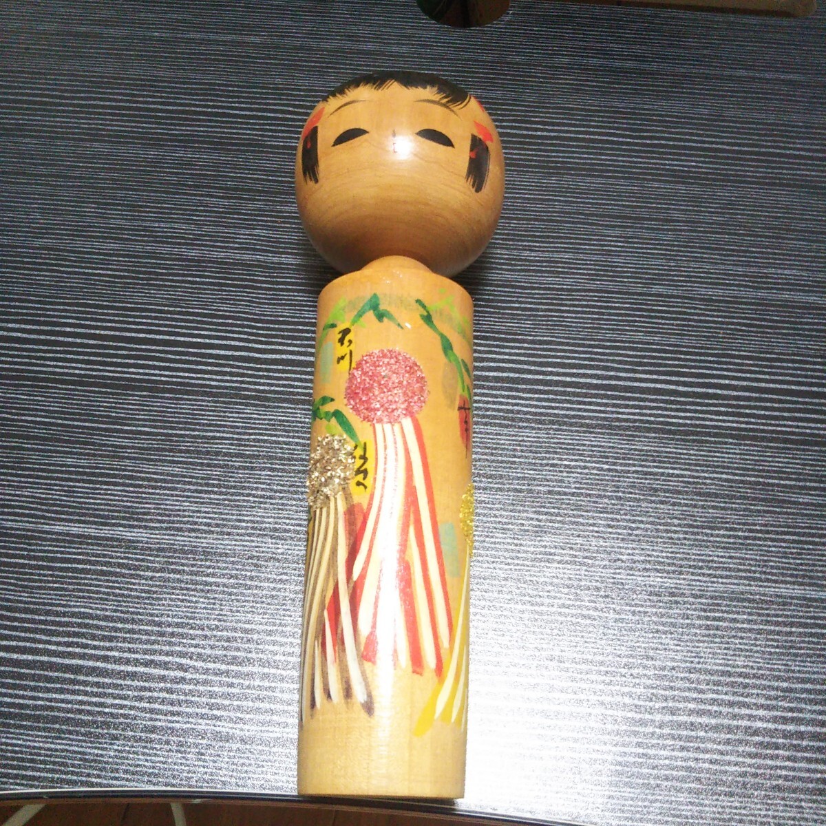 - 昭和の肘折系こけし作家名入り七夕柄オシャレ飾り伝統 こけしです。