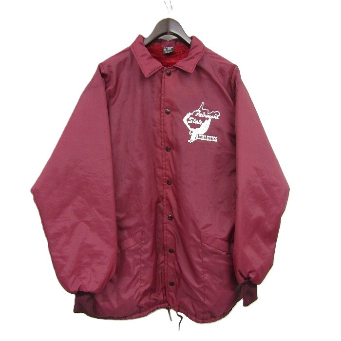 > ★USA製★ サイズ XL ARISTOJAC ナイロン コーチ ジャケット フリースライナー 中綿 プリント ワインレッド 古着 ビンテージ 5A2704