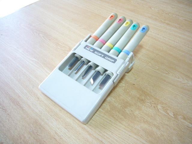 > 文溪堂 彫刻刀5本セット NEW SOFT GRIP ニューソフトグリップ ぶんけい 小学生図画工作 中古ジャンク 再利用 DIY工具リサイクル スペア