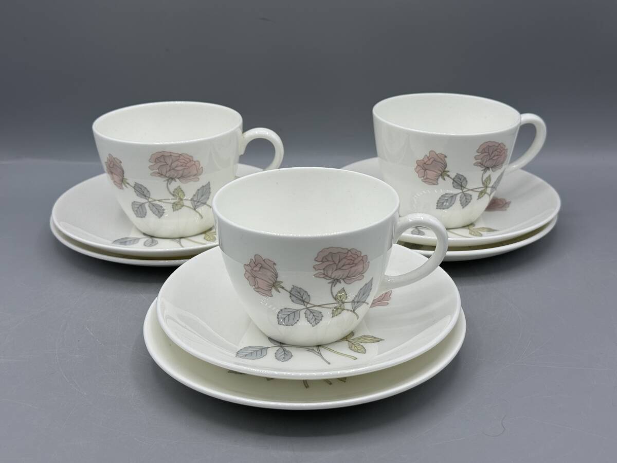- 英国 ウェッジウッド フレームローズ 薔薇 トリオ 3客 カップアンドソーサー サイドプレート 皿 カップ&ソーサー (#-2)