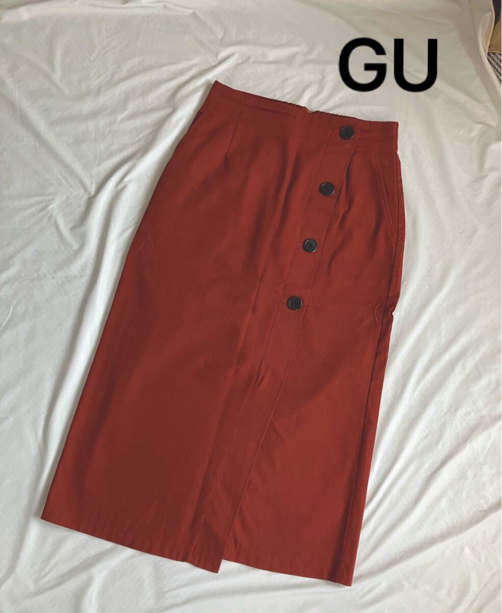 - 【GU】ボタンラップナローミディスカート Mサイズ