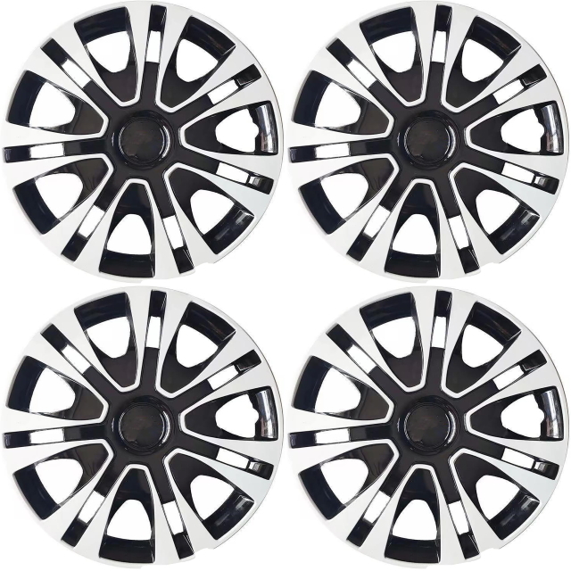 - 14インチ用ホイールキャップホイールカバー4枚セット ABS素材 純正スタイルの簡単装着ホイール ホワイト&ブラックカラー スポークデザイン