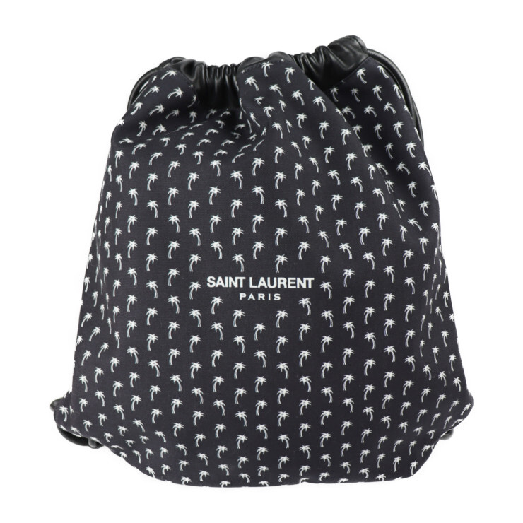 - 超美品 サンローランパリ リュック デイパック 553919 キャンバス レザー 黒 ドローストリング バックパック【本物保証】