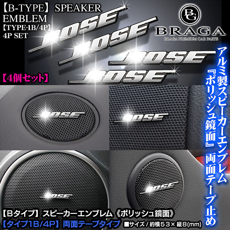 - タイプ1B/4P 両面テープBタイプ/スピーカーエンブレム 4個セット/アルミ製 ポリッシュ 鏡面仕上/互換品/ブラガ BG BRAGA