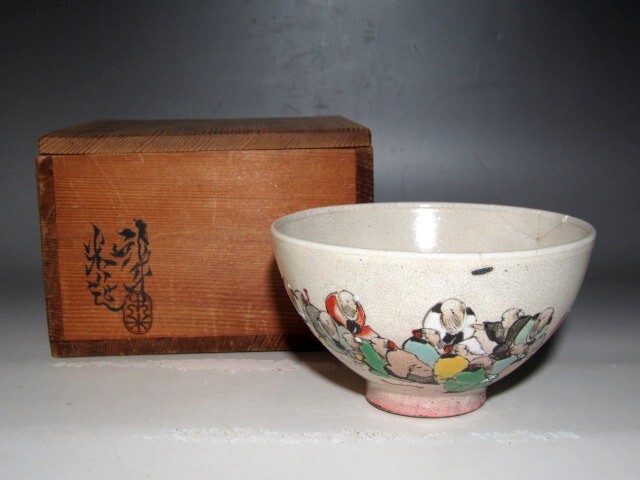 - 青木木米(聾米-ろうべい)百老人茶碗 かすがい直しあり☆z346