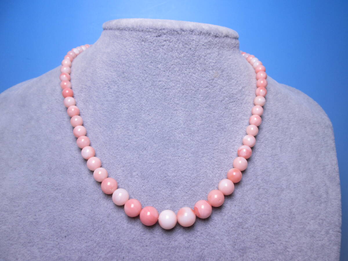 > ☆G SILVER 本珊瑚玉 ピンク珊瑚 4mm~8mm のネックレス 20,61g